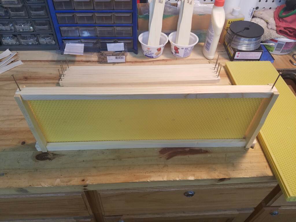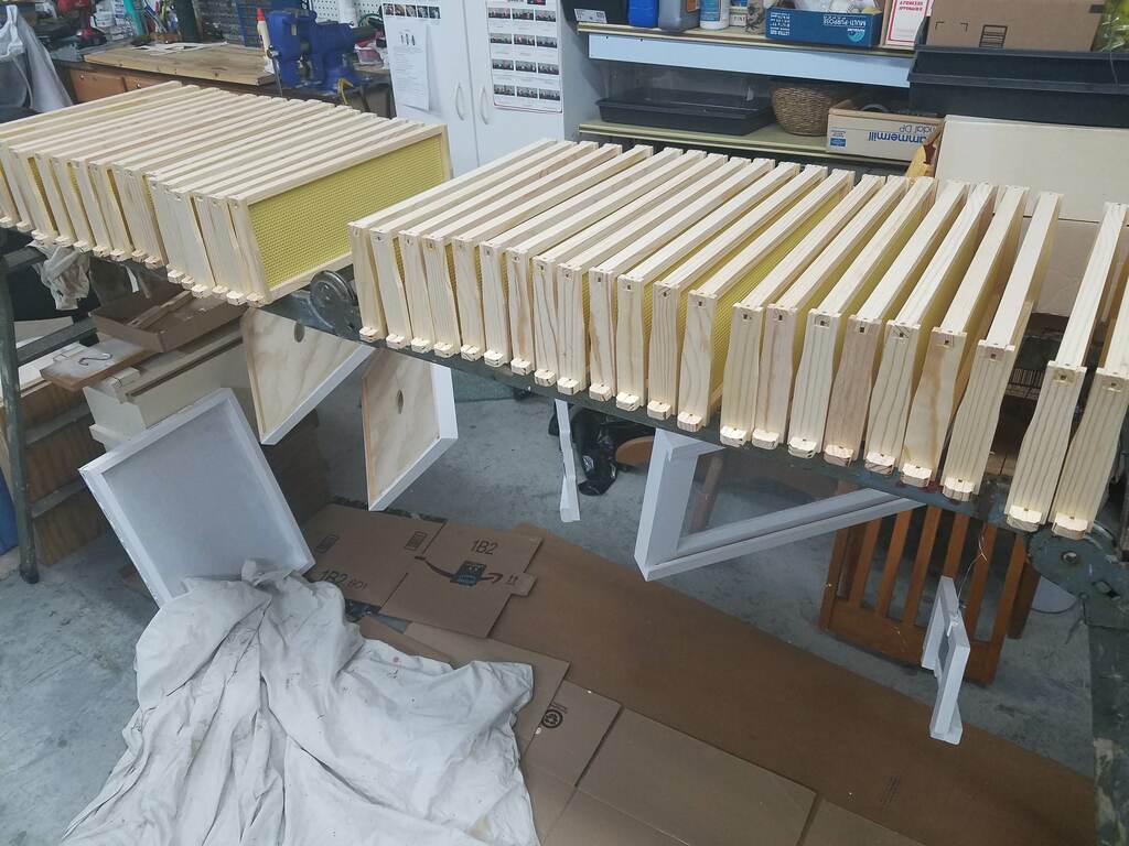 We finally bought some new medium frames today so we can add more honey supers. Once I got the routine down it only took about an hour to assemble them. I could have purchased them already assembled for $1 more per frame, but since I bought 40 I decided to save the $40 and do it myself.